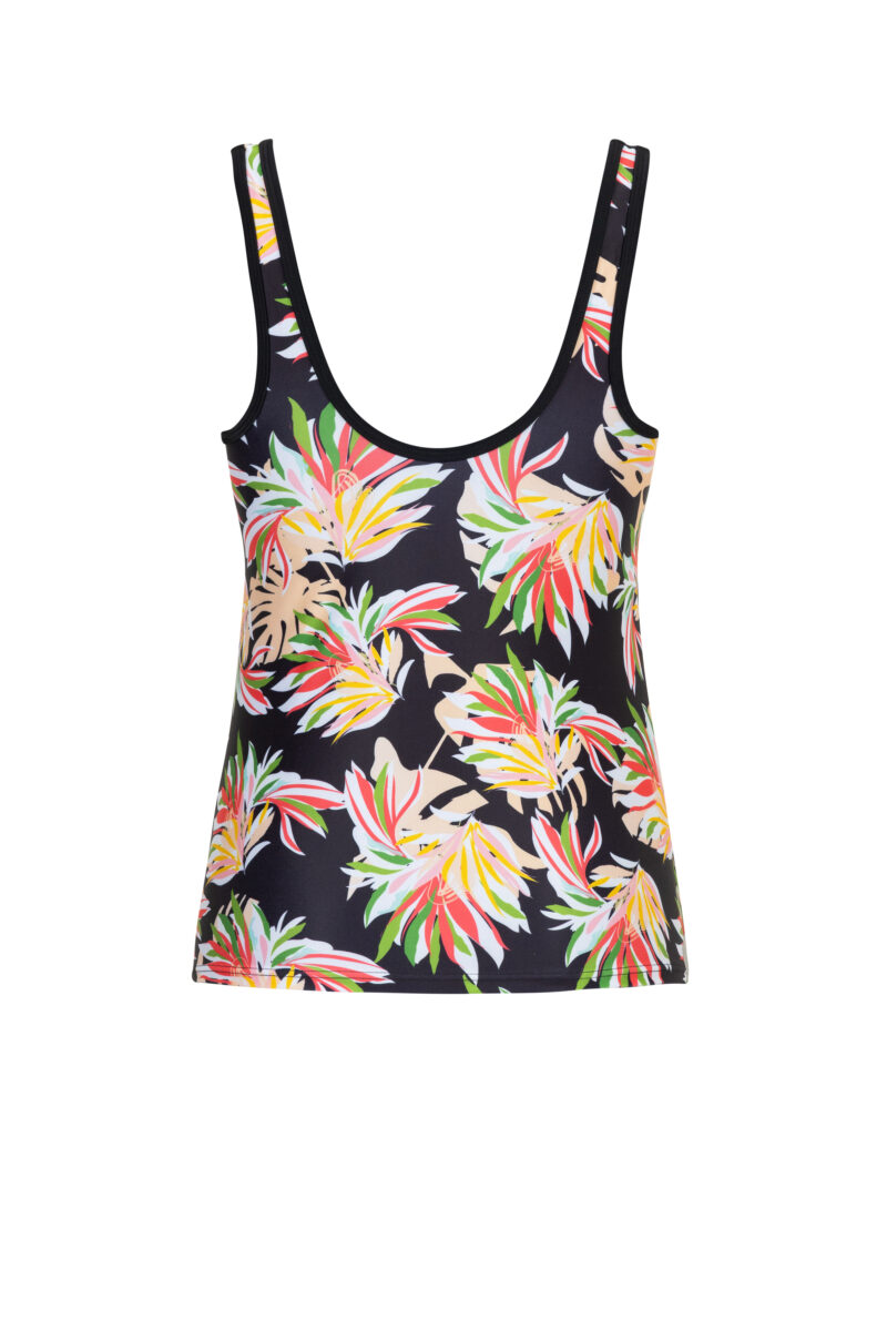 The Madeira mesh tankini combines extra coverage with a sleek, flattering silhouette. A sheer black mesh neckline contrasts with a bold tropical palm print to provide a post-surgery swimwear piece that effortlessly provides additional coverage and ultimate style. With built-in tummy control lining, this swimwear piece offers gentle shaping and all-day comfort.